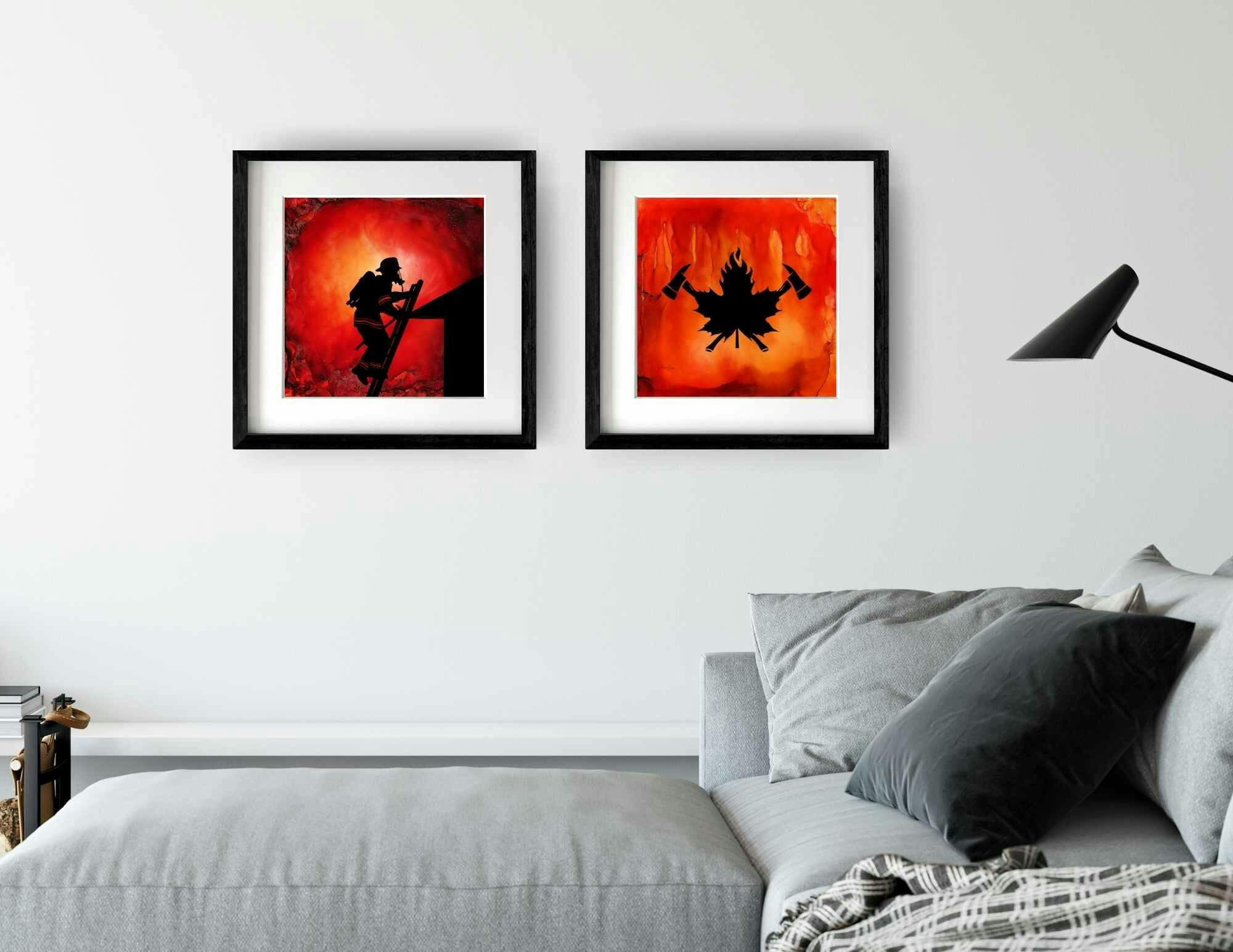 I purchased two of your pieces as gifts for my sons who are firefighters. They are in their twenties and are difficult to buy for but when I saw your art, the choice was easy. The work spoke to me, and I knew it would to them too. I framed the pieces in stunning black frames and when the gifts were received on Christmas Day, the results were exactly as I knew they would be. Thank you for capturing a moment in time of what they do in their day to day, helping our community.