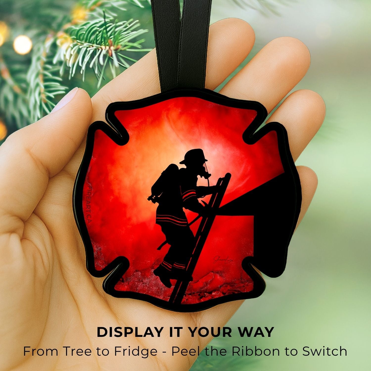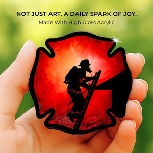 About This Piece:  This piece, made with the very flames they combat, captures the spirit of those who dare to face the fire. These brave men and women put their lives on the line every day to protect our communities.
