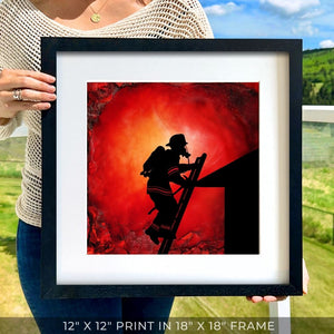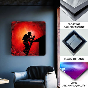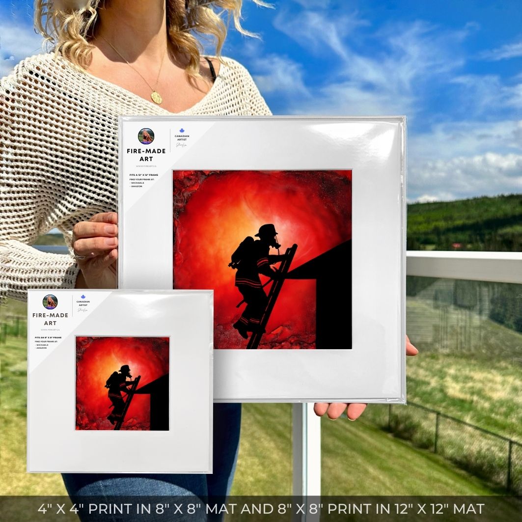 A firefighter ascends the ladder into the heart of the unknown, answering the call without hesitation. Created with the very fire they battle every day, this piece speaks to the heroism of those who show up—every time the tones go off—to protect lives, homes, and communities.