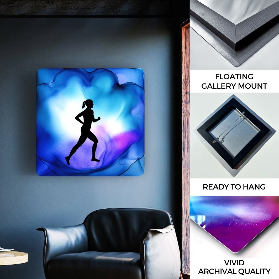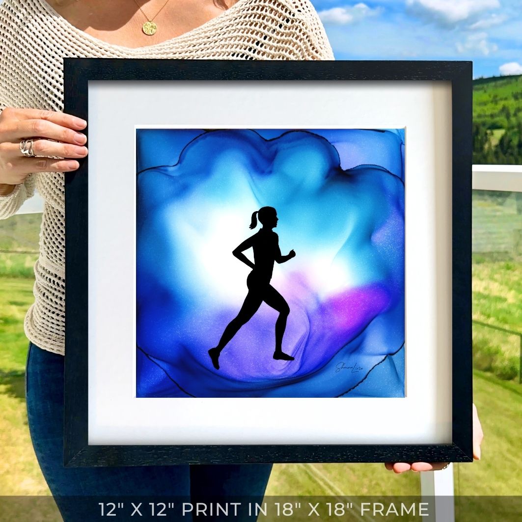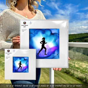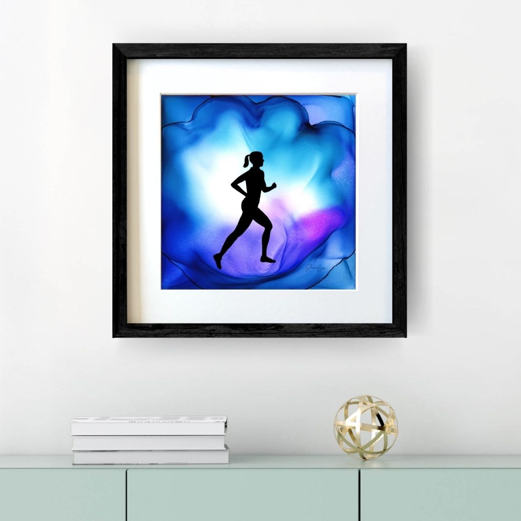 Sometimes you just need to run, not for a purpose or a goal, but to re-charge your soul. Sometimes you need the pavement, the rain, the sweat, and the mud to rise above.  The vivid swirls of the fire and ink capture that strange kind of beauty that comes when running free.