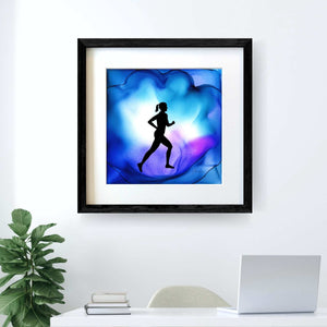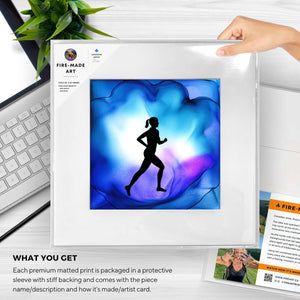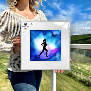 Sometimes you just need to run, not for a purpose or a goal, but to re-charge your soul. Sometimes you need the pavement, the rain, the sweat, and the mud to rise above.  The vivid swirls of the fire and ink capture that strange kind of beauty that comes when running free.