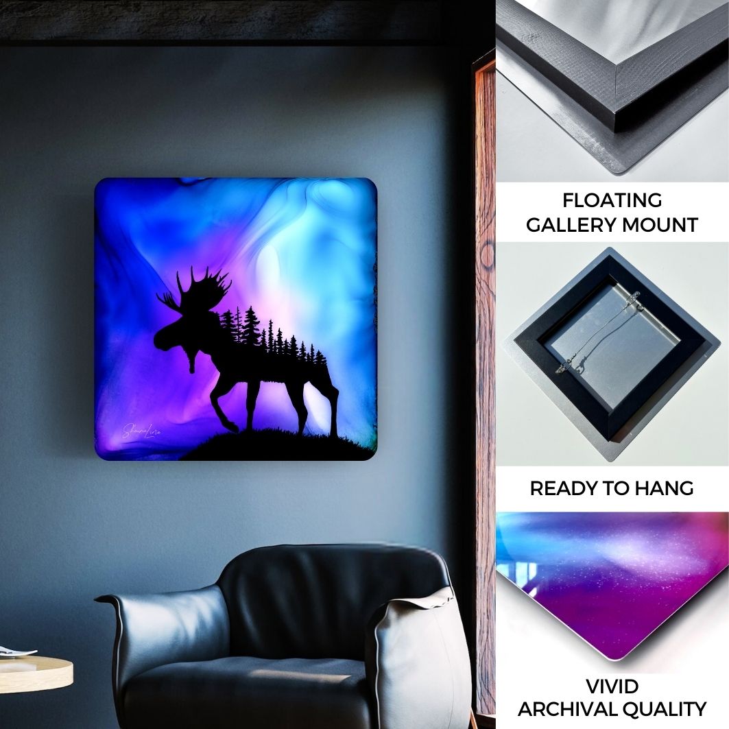The swirl of light and colour created by the fire sets the scene where one of nature's great creatures, the moose, moves through the night immersed as one in its forest home.