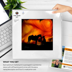 Both my son and husband are firefighters. It was a pleasant surprise to find firefighter art that was literally made with fire! I surprised them with two pieces for Christmas and they just loved them!
