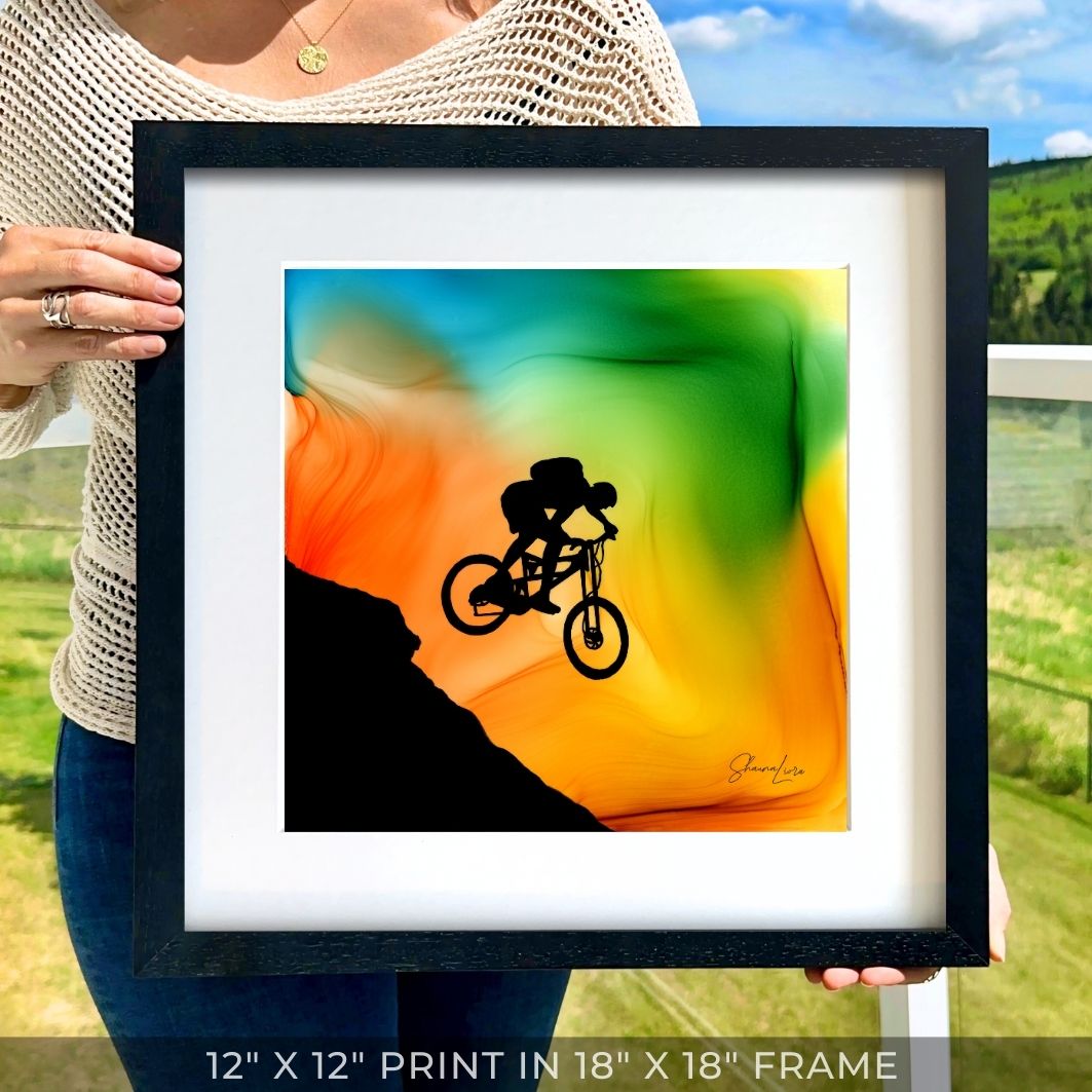 I created this piece to capture the spirit of those who dare to immerse themselves in the art of adventure- the brave souls that enjoy a sunrise from the top of a summit and descend the mountain on their own path- who aren't afraid to engage fully in the power and beauty of our incredible planet.