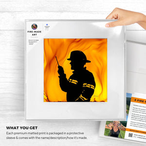 In the most intense of situations, the Chief takes command. Their leadership provides clear direction to take swift action and prevent tragedy. This piece, made with the very fire they respond to every day, tells the story of the ultimate leader.