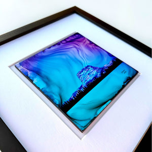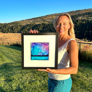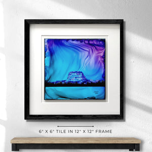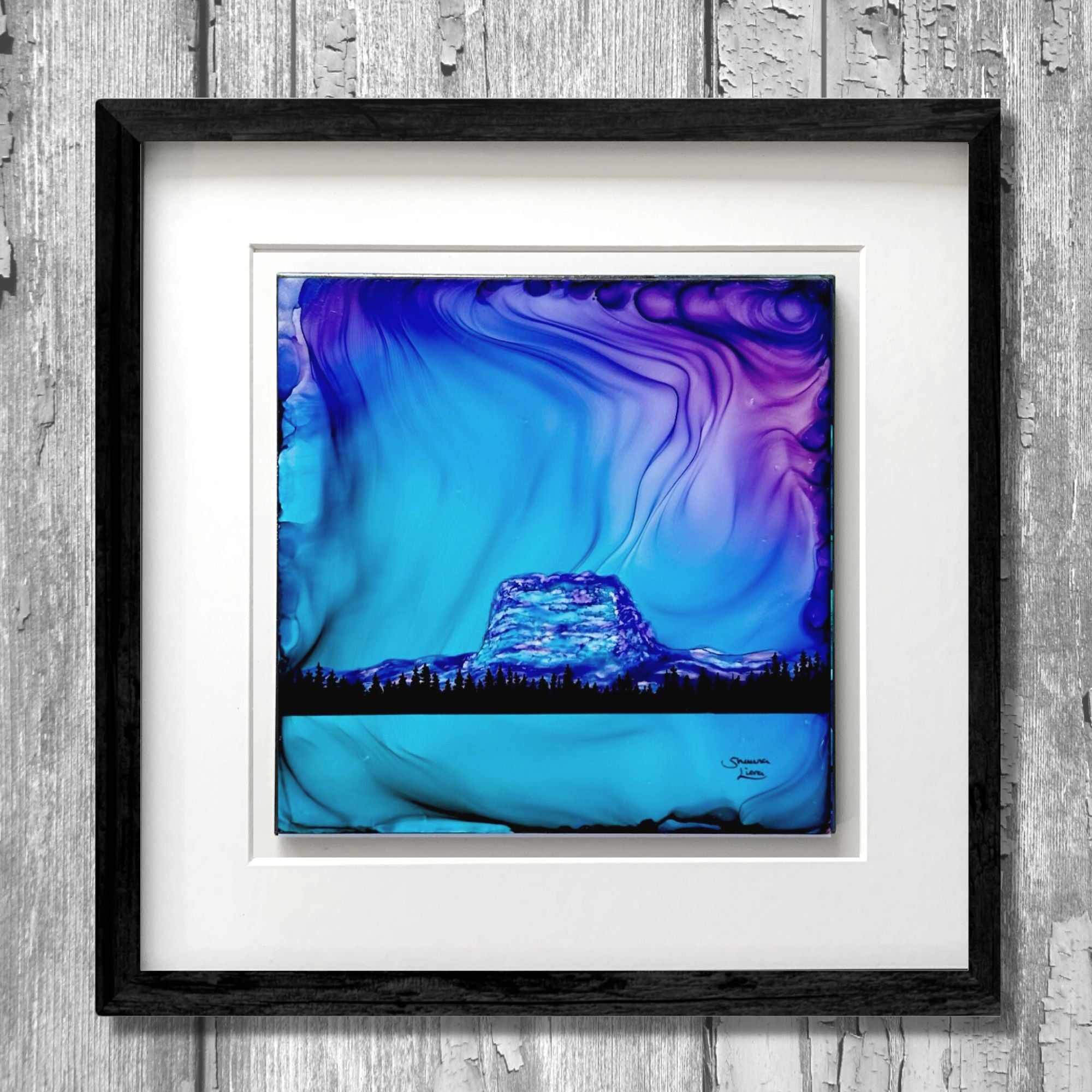 The dreamlike swirl of the fire and ink led me to this mystical scene. A sacred icon to the Siksika First Nation, the sentinel form of Chief Mountain rises above the lowland plains. Stalwart yet serene, its spectacular beauty calls you in.  Eye-popping brilliance and stunning detail come to life with this original 'Chief Mountain' piece.