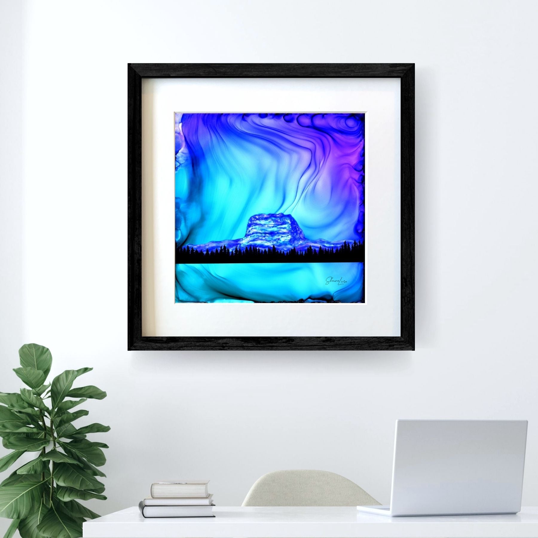 The dreamlike swirl of the fire and ink led me to this mystical scene. A sacred icon to the Siksika First Nation, the sentinel form of Chief Mountain rises above the lowland plains. Stalwart yet serene, its spectacular beauty calls you in.