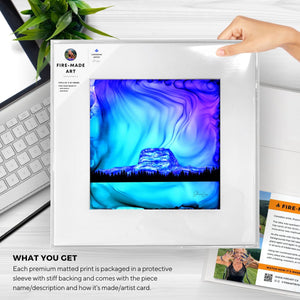WHAT YOU GET:  Each premium matted print is packaged in a protective sleeve with stiff backing and comes with the piece name/description and an artist card describing how it's made.  UltraPro paper captures the vibrant colours of the original that will last a lifetime.