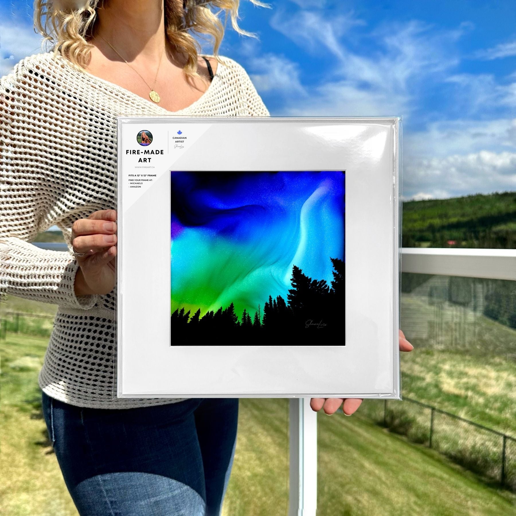 The night sky holds many surprises, one of them being the rare and wonderful dance of the aurora borealis. When I created this piece the fire beautifully created the perfect northern lights. I called this piece 'Dancing Light' because it captures the awe I feel while being witness to this mesmerizing wonder of nature.