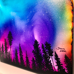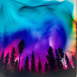 Some experiences with nature are so intense they are burned into your soul forever. I created this piece to capture an evening I once had on a canoe trip, where a group of us watched the northern lights dance intensely for hours.  It was a display so spectacular and otherworldly that I hoped it would never end. Like a dream, I hoped I would never wake up.