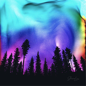 Some experiences with nature are so intense they are burned into your soul forever. I created this piece to capture an evening I once had on a canoe trip, where a group of us watched the northern lights dance intensely for hours.  It was a display so spectacular and otherworldly that I hoped it would never end. Like a dream, I hoped I would never wake up.