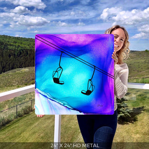 That perfect powder day.  That chill in the air as you catch the first chairlift and pick out your line to take across the untouched powder.  The dreamlike movement captured by the fire and ink conveys the anticipation for the perfect run and the joy of carving that first set of tracks.