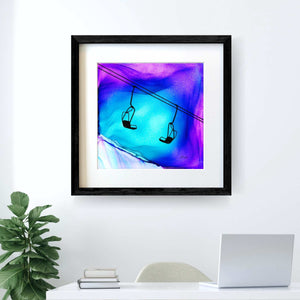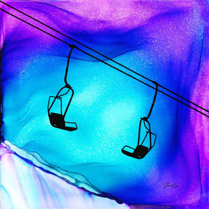 That perfect powder day.  That chill in the air as you catch the first chairlift and pick out your line to take across the untouched powder.  The dreamlike movement captured by the fire and ink conveys the anticipation for the perfect run and the joy of carving that first set of tracks.