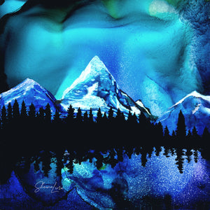The cool blue tones that emerged from the fire drew me to create this piece based on a crisp, clear night while backpacking in the Assiniboine area.  It was a night that I completely got lost in as I took in the magic of the star-filled sky and surrounding peaks.