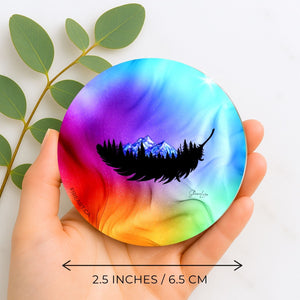 The Story Behind This Piece: A feather, drifting with the breeze. I created this piece for those who wish to catch the wind and soar to new heights. The vibrant colors and movement of the fire and ink speak to the freedom I lose myself in when exploring wild places.