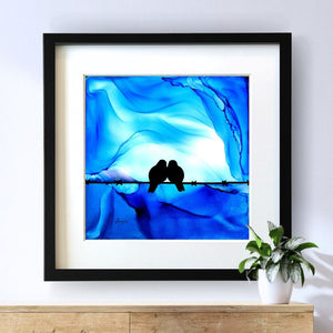 I created this piece to celebrate the richness of being together.  The dancing swirls that emerged from the fire and ink capture that beautiful feeling of being with the person you love. That feeling of home.
