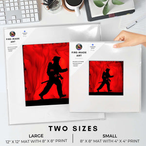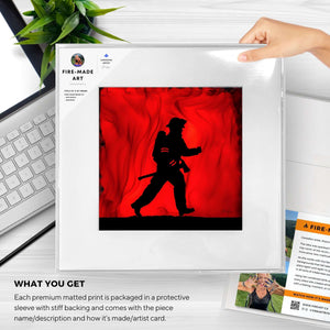 I purchased two of your pieces as gifts for my sons who are firefighters. They are in their twenties and are difficult to buy for but when I saw your art, the choice was easy. The work spoke to me, and I knew it would to them too. I framed the pieces in stunning black frames and when the gifts were received on Christmas Day, the results were exactly as I knew they would be. Thank you for capturing a moment in time of what they do in their day to day, helping our community.