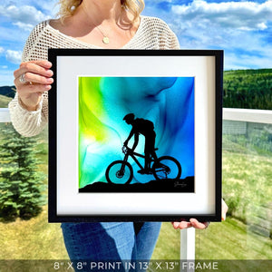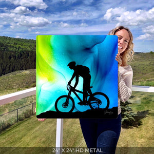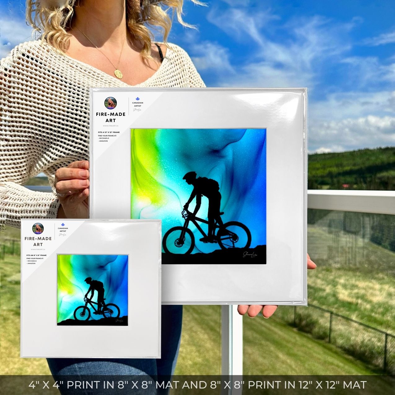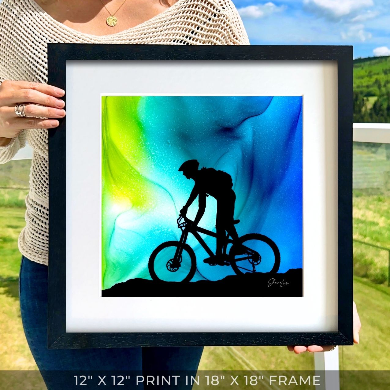 A dancing sky made with fire and ink embodies those jolts of adrenaline that course through you as you fly down the trail. You are in the moment, merged with your bike, blurring through a soul-stirring landscape as you create your own adventure.