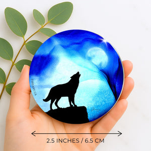 About This Piece: The alchemy of fire and ink produced this amazing moonlit background, inevitably leading me to create this piece featuring a lone howling wolf. Under the cool light of night, this icon of nature sings the song of our soul.