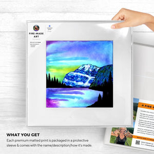 WHAT YOU GET:  Each premium matted print is packaged in a protective sleeve with stiff backing and comes with the piece name/description and an artist card describing how it's made.  UltraPro paper captures the vibrant colours of the original that will last a lifetime.