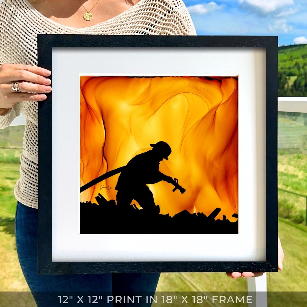 Shauna’s fire-made art is inspired by her 13 years in Alberta’s Emergency Services, where she led Search & Rescue teams and served with Canada Task Force 2—each piece honors the firefighters and first responders who walk through fire.