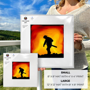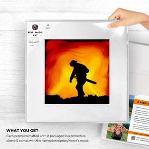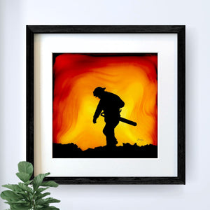 The artist has deep ties to the Fire Service. Shauna's time with Emergency Services in Alberta-Canada, 10 years with Search and Rescue, and 3 years with Canada Task Force 2 have inspired the ultimate Firefighter Collection; fire-made art honouring those who serve as first responders.