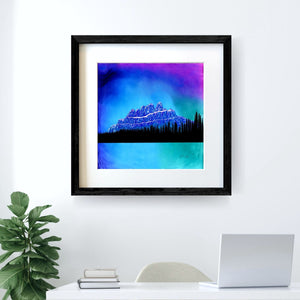 The breathtaking Castle Mountain is revealed as the night sky dances with the aurora borealis, created by fire and ink. For those who have been enchanted by this mountain that lies between Banff and Lake Louise - it's no surprise that dreams really do come true.