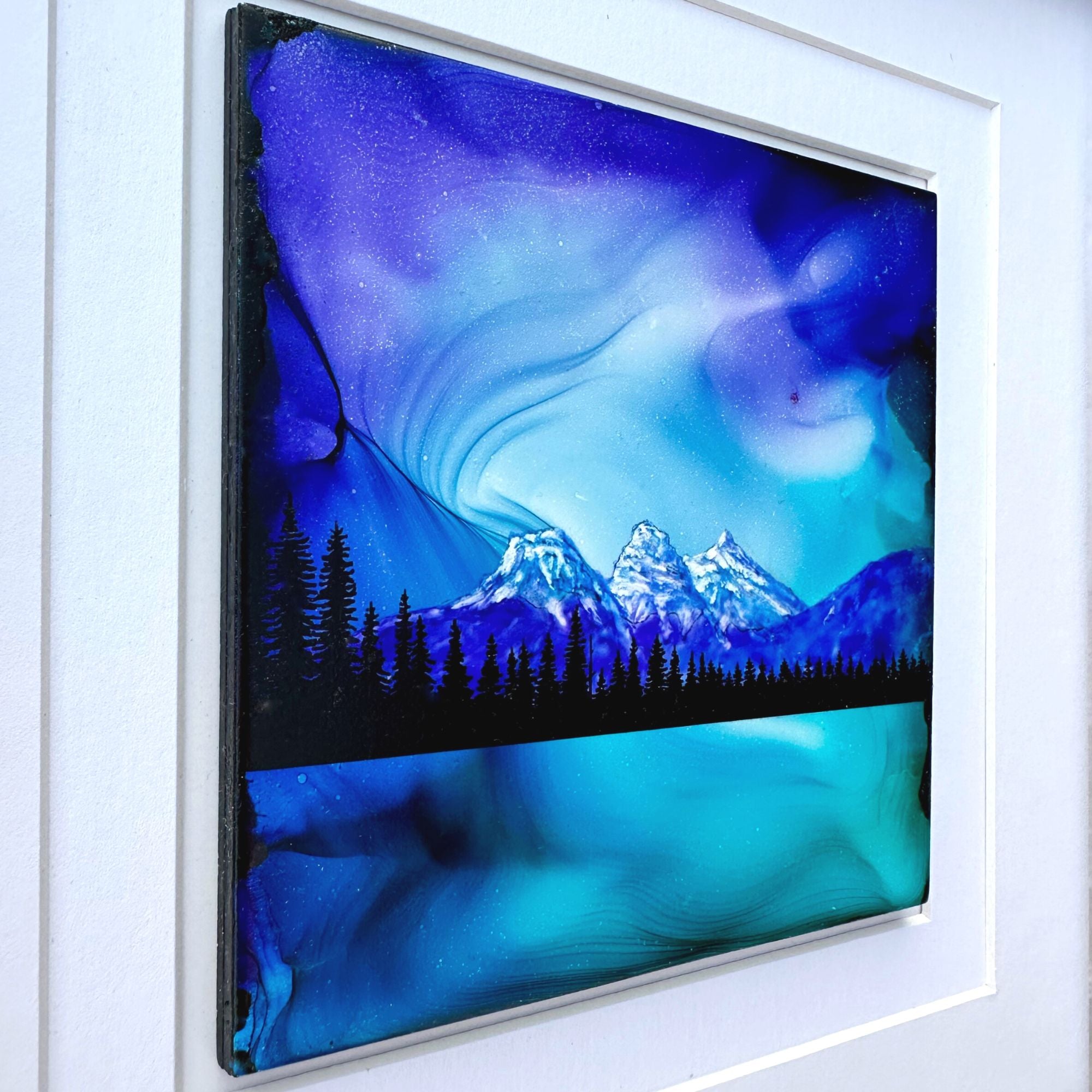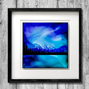 The mesmerizing ripple and movement captured by the fire and ink produced this amazing aurora-like background, leading me to create this piece celebrating the beautiful three sisters under the cool light of night. Brilliant and stunning detail come to life with this original 'Three Sisters Aurora' piece.