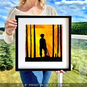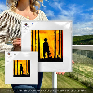 Amidst the haunting beauty of a forest stripped by fire, a wildland firefighter stands strong. They uncovers hidden pockets of heat, ensuring no ember reignites. This artwork, created with fire, speaks of her dedication to preserving the land and protecting the future. It stands as a tribute to the tireless efforts of those who work in the shadows of wildfires.